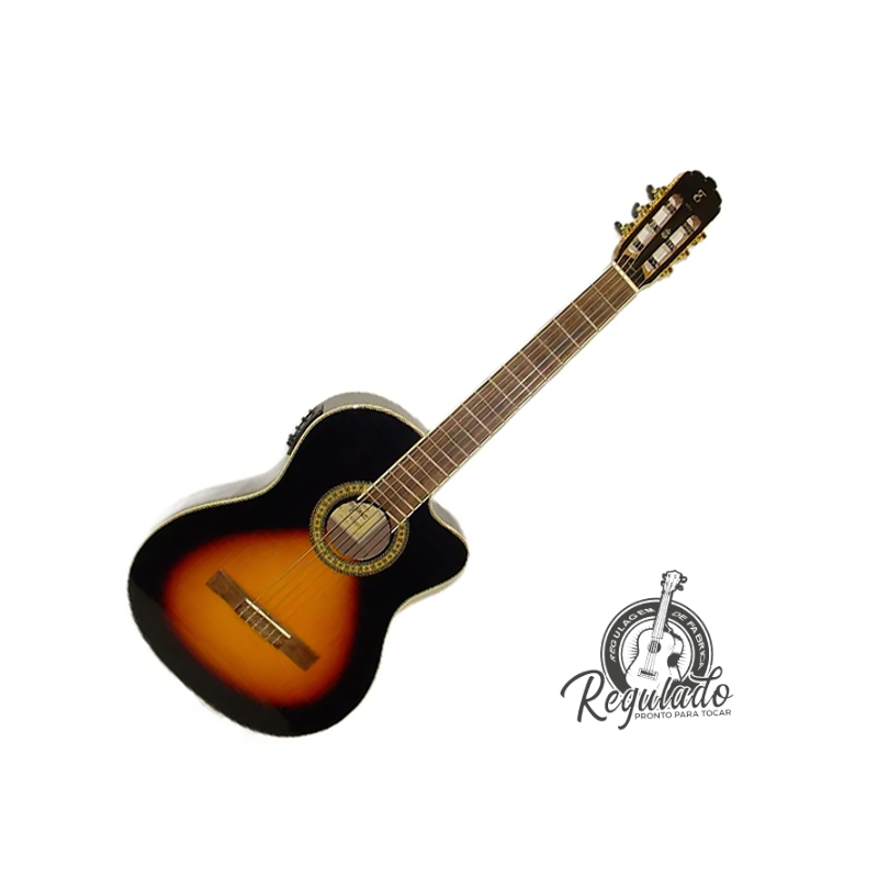 BRAÇO: OkoumeESCALA: Chhlik wood 25.5”TAMPO: SpruceLATERAL / FUNDO: Black walnutNUT: 50mmCAPTAÇÃO: PiezoCONTROLES: Volume, grave, médio, agudo e presenceTARRAXAS: 3+3 douradas com botões pretosVERSÃO PARA CANHOTOS? NãoCAVALETE: Chhlik woodBOJO: 90mm X 100mmEQ: Tagima TEQ-8, ativo de 4 bandas e afinador*Produto sujeito a alteração sem aviso prévio